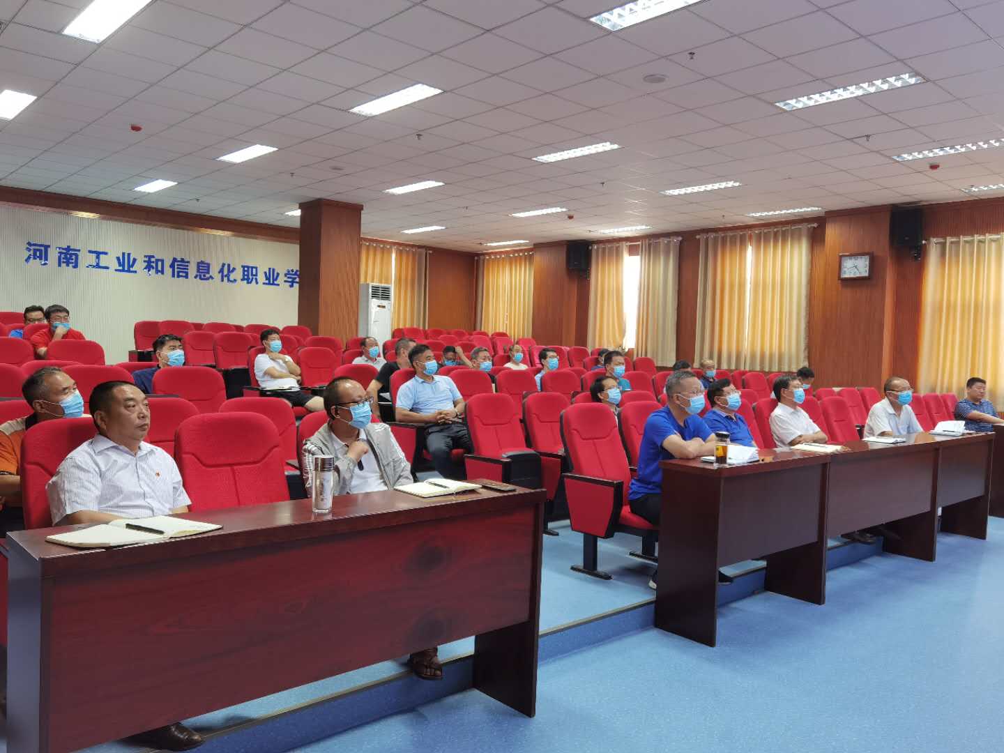 7月23日下午,全省教育系统全面从严治党工作推进会暨以案促改警示教育视频会召开,学院在焦领导毋虎城、陈荣邦、张庆伟及各部门主要负责人在第四会议室参加了视频会。