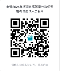参加本次面试有效期范围为:2023年河南省高等学校教师资格理论测试成绩合格但面试未通过人员;2024年河南省高等学校教师资格理论测试成绩合格人员。