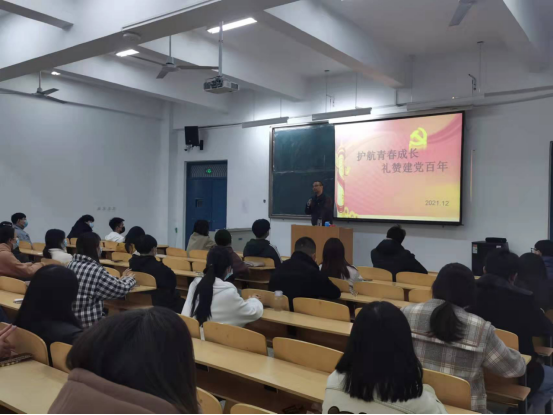 为了进一步宣传心理健康教育,领悟不忘初心、艰苦奋斗精神,2021年12月3日下午,学生工作部副部长王永强在2106教室为学生讲授了以“护航青春成长,礼赞建党百年”为主题的心理健康教育专题讲座。