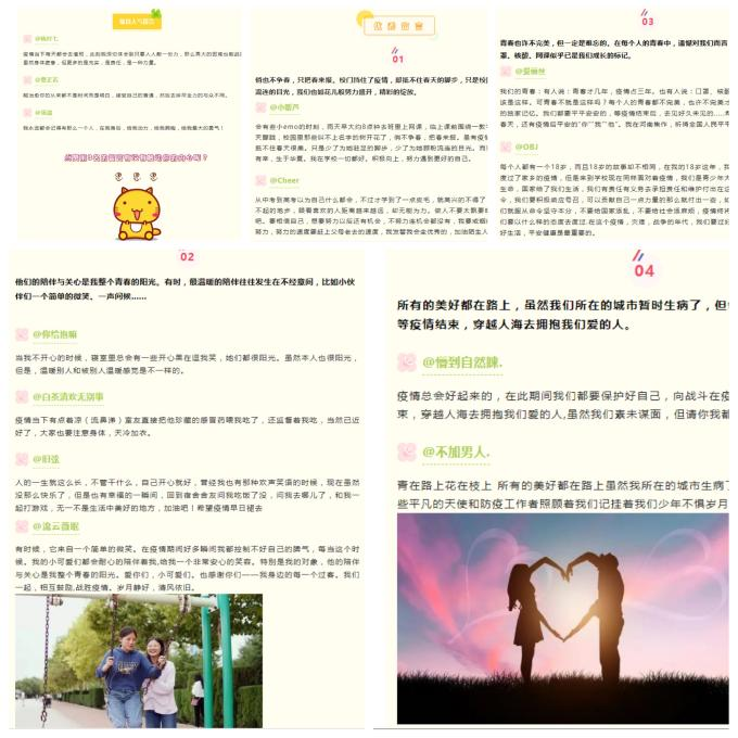 为宣传“3·25善爱我”心理健康日,呼吁我校师生关爱生命,用心感受美好瞬间,心理健康教育中心向全体同学发起“美好征集令”,用心感受生活中的点滴美好,记录真情实感,分享美好生活。共有三百余名同学参与留言,近两千名同学参与欣赏。