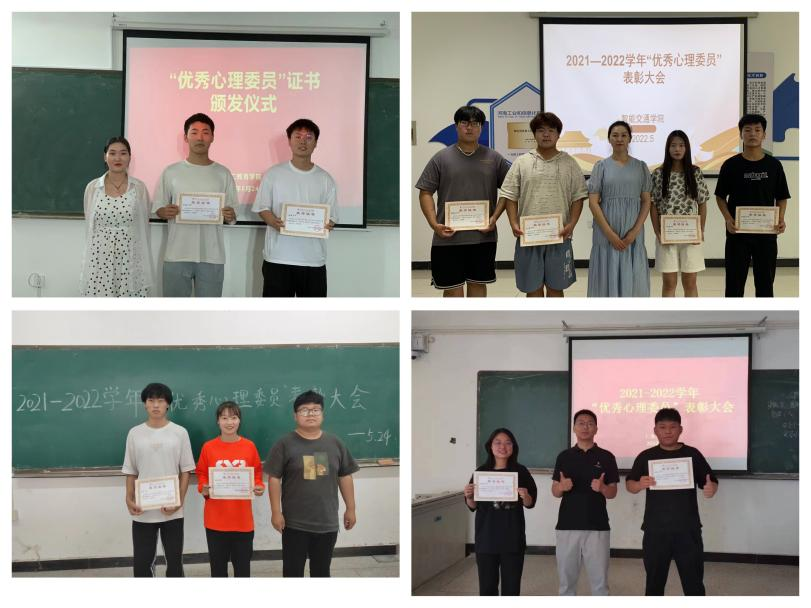 为完善我校大学生心理健康教育工作,提升学生心理健康教育和服务工作水平,充分发挥“朋辈帮扶”的作用,心理健康教育中心对过去一年来在学生心理健康教育工作方面作出突出贡献的心理委员进行评选表彰。