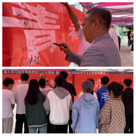 用真诚打动你我,5月25日中午,心理健康教育中心在学苑餐厅前小广场组织了签名活动,现场展示了本次心理健康教育宣传月系列活动的精彩瞬间。副院长张庆伟等领导亲临现场与师生交流互动并带头签名,为本次心理健康教育宣传月系列活动画上了圆满的句号。