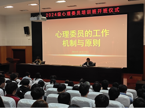 为深入学习贯彻党的二十届三中全会精神,贯彻落实习近平总书记关于加强学生心理健康教育工作的重要指示批示精神,进一步深化我校高校心理育人工作成效,提升大学生心理健康素养,提升我校心理育人质量,进一步提升我校学生管理工作水平,提高心理委员的思想认识水平,明确心理健康教育工作的重要性,了解相关心理知识,初步掌握大学生常见心理问题的表现和应对措施,熟悉心理委员的工作职责,学习自我调节并能更好的保证班级同学的心理健康状况。2024年10月22日下午4时心理委员培训开班仪式在我校多功能报告厅举行,会议由我校心理健康教研室主任张琬晴主持,出席会议的有学生工作部副部长殷越、2024级全体新生班心理委员及各系部(二级学院)心理辅导员。