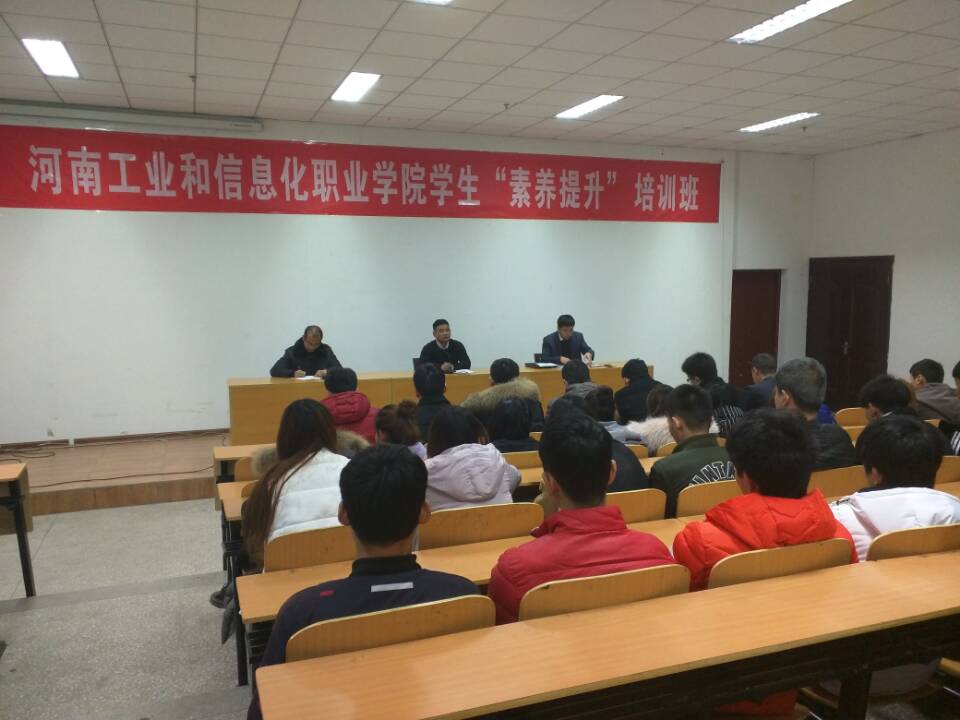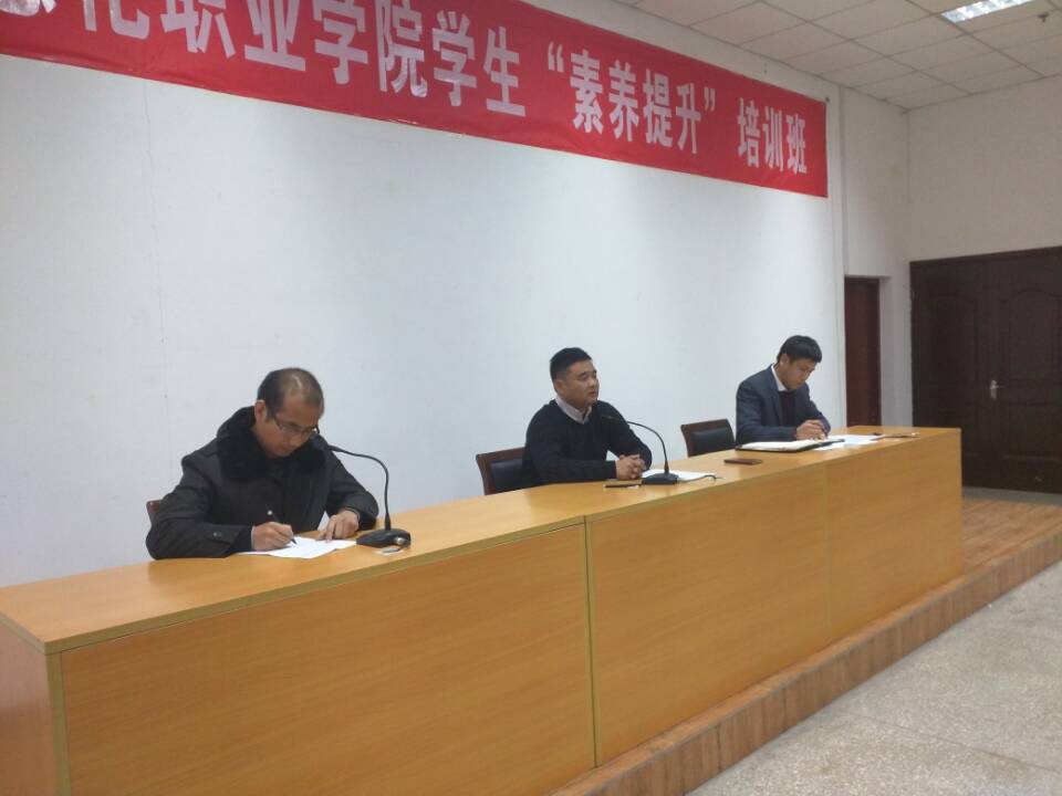 为了进一步加强我院学生管理,增加同学们的自律意识,提高同学们的综合素养,2016年12月15日,由学生处、团委举办的学生“素质提升”培训班顺利开班。