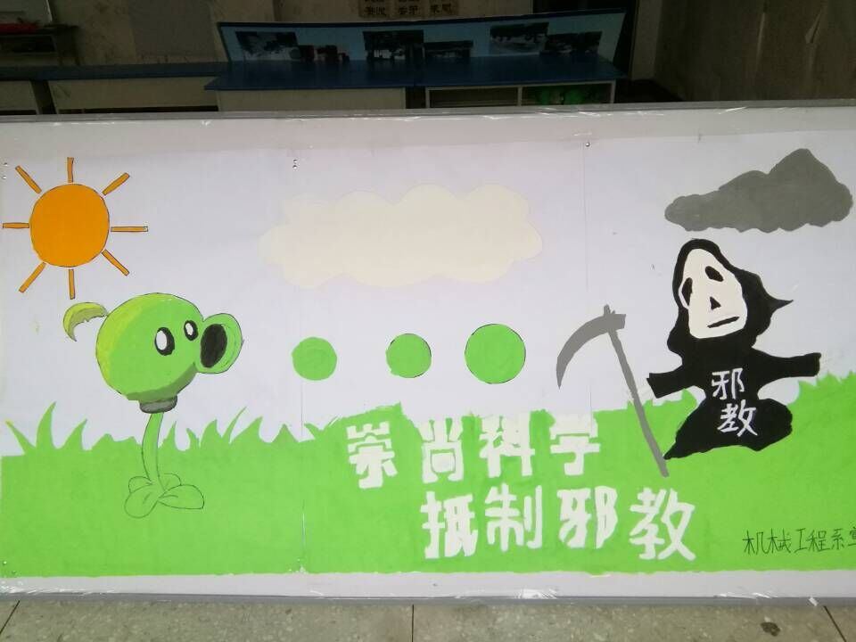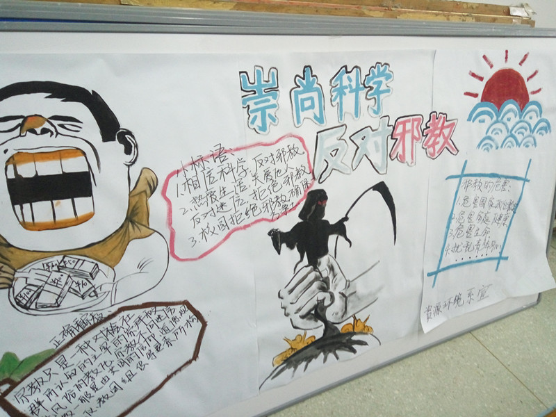 期间,各系部通过召开反邪教主题班会、制作反邪教宣传展板等形式,为同学们全面的普及了何为邪教?邪教的本质及危害,如何抵御邪教等相关反邪教法制知识。各班主任对本班确有宗教信仰的同学也进行了详细的了解并单独谈话,引导学生理性信仰宗教,拒绝参加非法宗教活动,坚决拥护中国共产党的领导,走中国特色社会主义发展道路。
