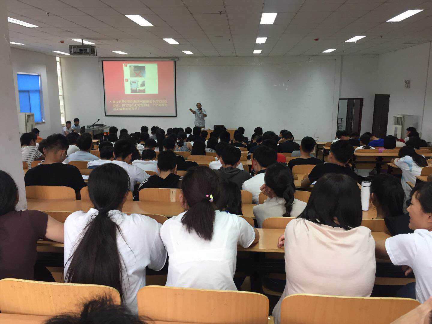 王永强从“爱国、爱家、爱自己”三方面给学生做了知识讲座,形式新型、内容丰富。讲座中,王永强通过大量详实而又贴切学生实际生活的例子,给大家上了一堂精彩的安全教育课。最后,王永强强调同学们提高安全防范意识的重要性,要严格遵守宿管办的管理制度,杜绝一切安全隐患。
