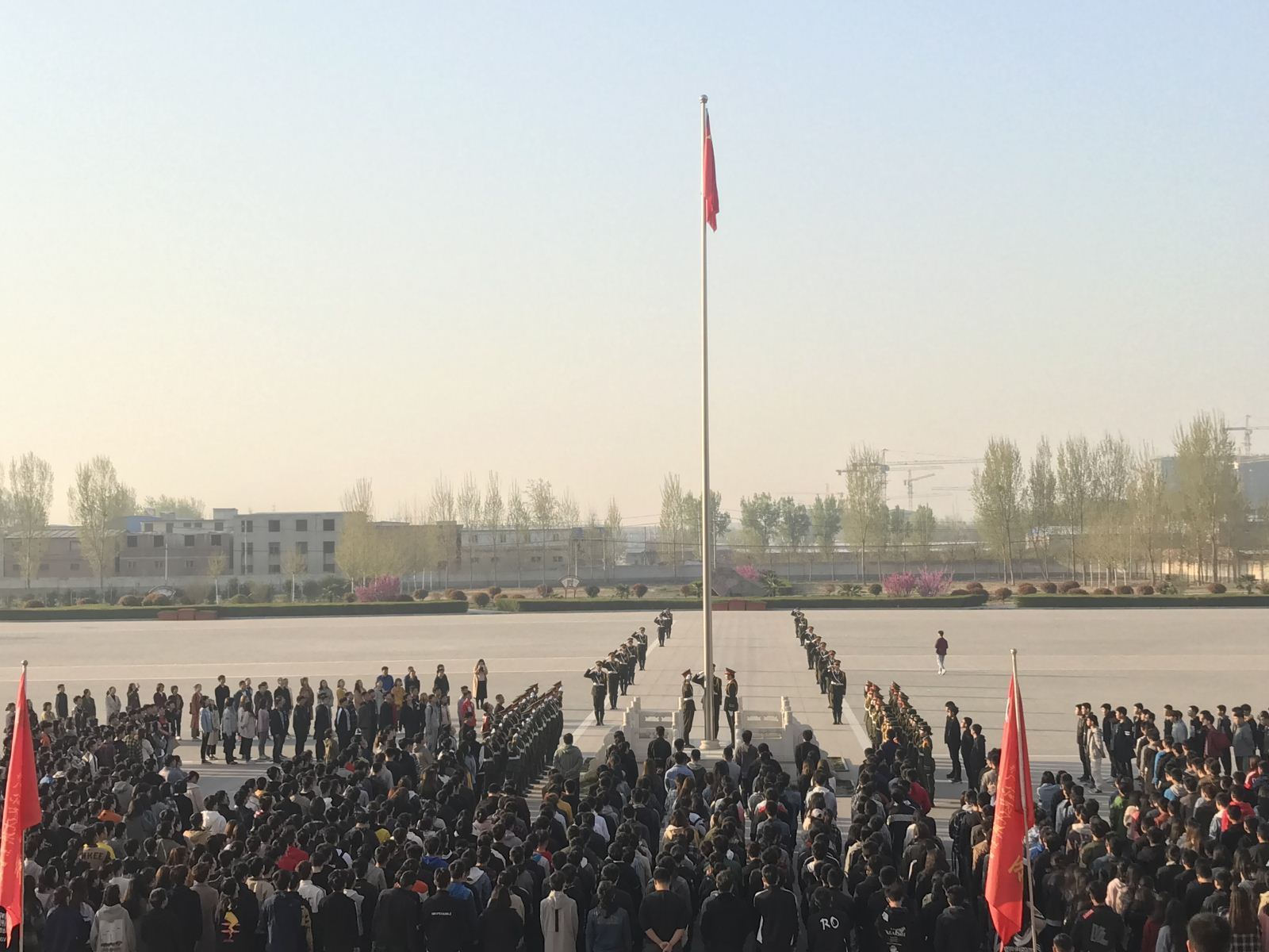 春深四月,花满校园,在这美好世界,我院于2019年04月01日在学院图书信息广场举行了新学期第二次升国旗仪式,共同见证五星红旗和初春的朝阳同时升起的神圣时刻。