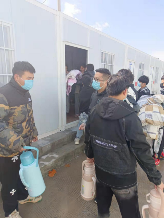 2021年11月7日,根据院领导的指示,学生处丁军猛处长带领工作人员及学生干部到校内疫情防控集中隔离点进行慰问,组织志愿者打扫隔离点的卫生,并为隔离学生带去被子、热水等生活用品。