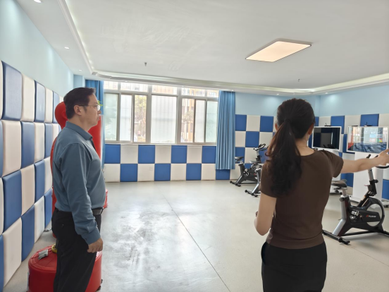 尹彦礼首先来到心理健康中心,参观了预约接待室、心理咨询室、生物反馈室、情绪宣泄室、音乐放松室等场所,并与中心的心理教师进行了亲切交流。心理健康教育中心主任张琬晴详细介绍了中心在心理健康教育、心理咨询、危机干预等工作的开展情况。