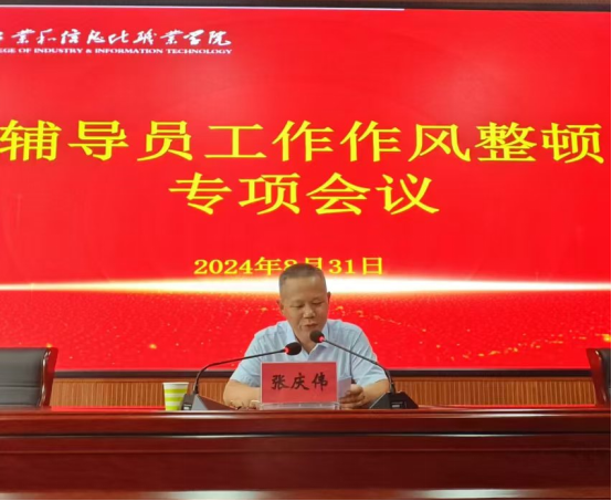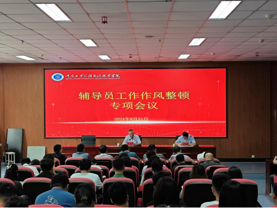 2024年8月31日上午,我校在第四会议室召开了辅导员工作作风整顿专项会议。副院长张庆伟、学生工作部部长、各系部、二级学院党总支书记和学生工作副主任、全体辅导员参加了会议。本次会议由学生工作部部长丁军猛主持。
