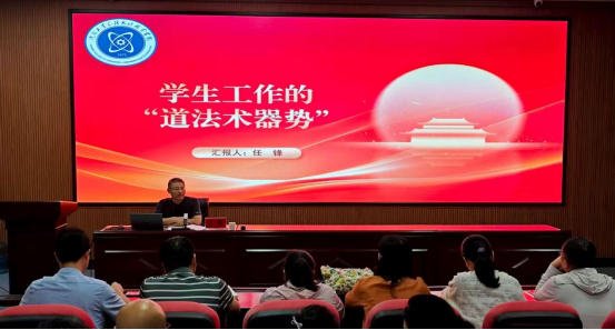 仪式结束后,首场培训课程随即开展。副校长任锋以《学生工作的 “道法术器势”》为题,结合实际案例从理论逻辑与实践方法层面,为学员搭建起系统的学生工作认知框架。课程内容扎实、针对性强,学员们认真记录、积极思考,现场学习氛围浓厚。