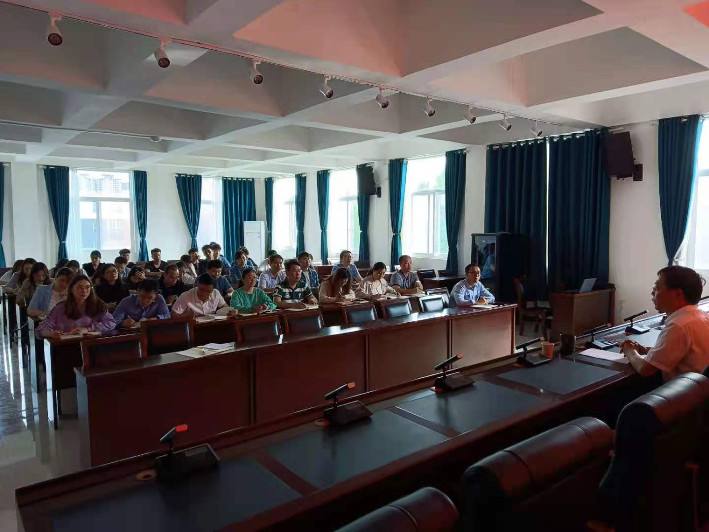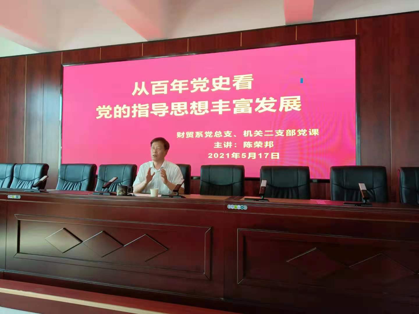 按照机关二支部党总支党史学习教育工作安排,为进一步推进党史学习教育工作扎实开展,5月17日下午,院党委副书记陈荣邦在第五会议室为机关二支部、财经商贸系党总支讲授党史学习教育专题党课,全体党员及部分党员发展对象参加了党课。