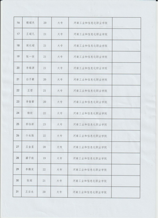 经初检初审、体检、心理测试、政审考核、役前训练等环节,高新示范区征兵领导小组组织区征兵办、基层武装部和学校武装部集体研究,确定我校秦宇飞等31名同学为定兵对象,现根据相关规定予以公示,人员名单如下: