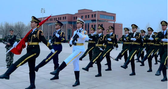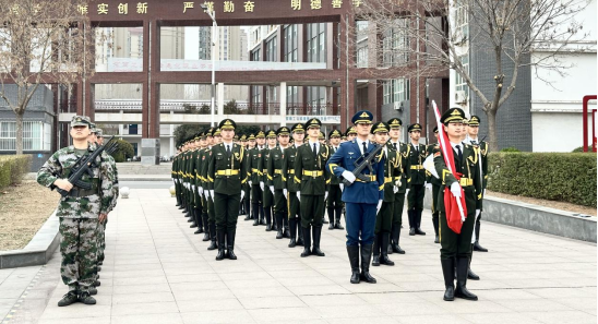 旭日初升,两千余名师生昂首挺立于国旗台前。“请全体肃立,迎国旗!”一声令下,国旗护卫队迈着整齐的步伐将国旗运至国旗台下。“向国旗敬礼!”,五星红旗伴随着雄壮的国歌冉冉升起,激情昂扬的歌声响彻校园,全体师生目光坚定,共同见证这国防教育中领人难忘的一刻。