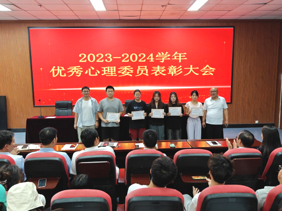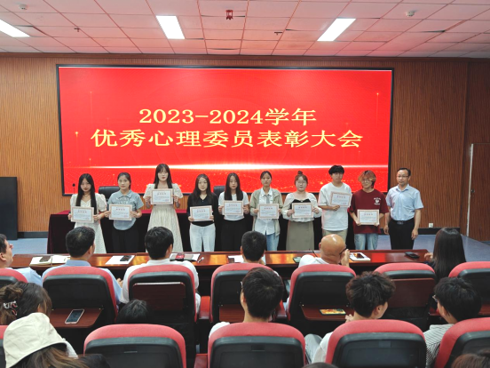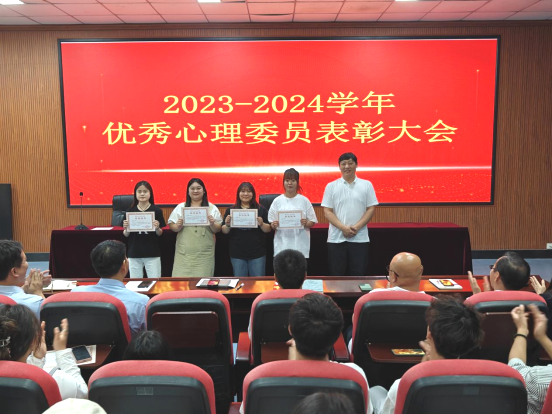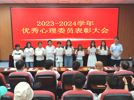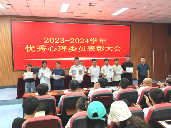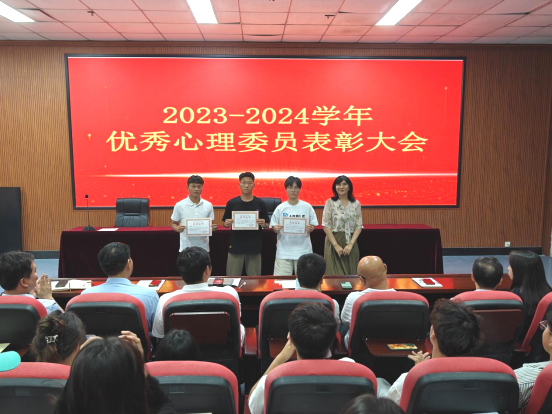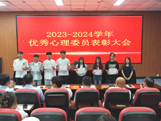 发言结束后,各系部(二级学院)主管领导和心理辅导员老师给本系部(二级学院)优秀心理委员颁发奖状并合影留念。