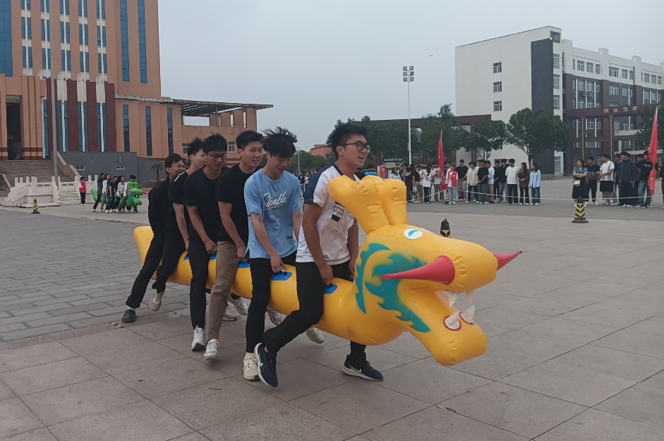 本届心理健康趣味运动会各二级学院共100多支队伍,共计600多名队员参与,共设置旱地龙舟、鼓动人心、团旗接力、快乐贪吃蛇和车轮滚滚五个项目,每个比赛项目既是心智和体力的角逐,也是团结协作力的完美比拼。