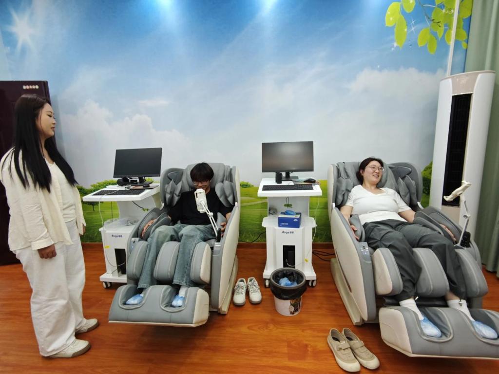 音乐放松室配备的音乐减压放松椅、唱吧机以及体感音波床,让同学们经历专业的音乐行为和音乐体验,有助于同学们缓解焦虑、紧张等不良情绪,消除心理障碍。