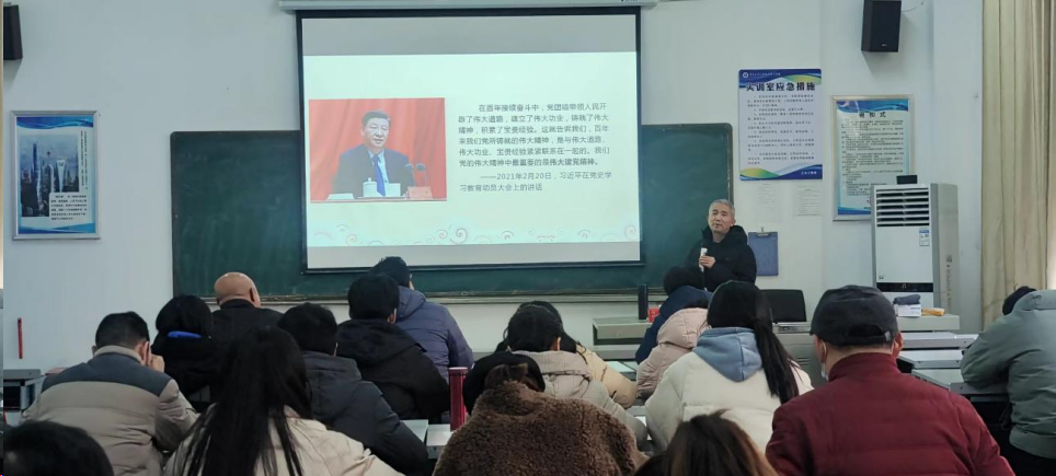 12月19日下午,纪委书记盛兴文以“伟大建党精神的学习与思考”为题为土木工程系党员讲授专题党课。全体党员及部分入党积极分子参加学习。