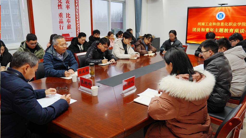 为扎实推进学习贯彻习近平新时代中国特色社会主义思想主题教育在团员和青年中走深走实、见行见效,12月14日下午,党委书记张树岭、副院长张庆伟与团学青年交流座谈,调研了解团员和青年主题教育开展情况。各系团总支书记、教师团员代表、院系学生会轮值主席、“青马工程”培基班学员代表参加座谈会。
