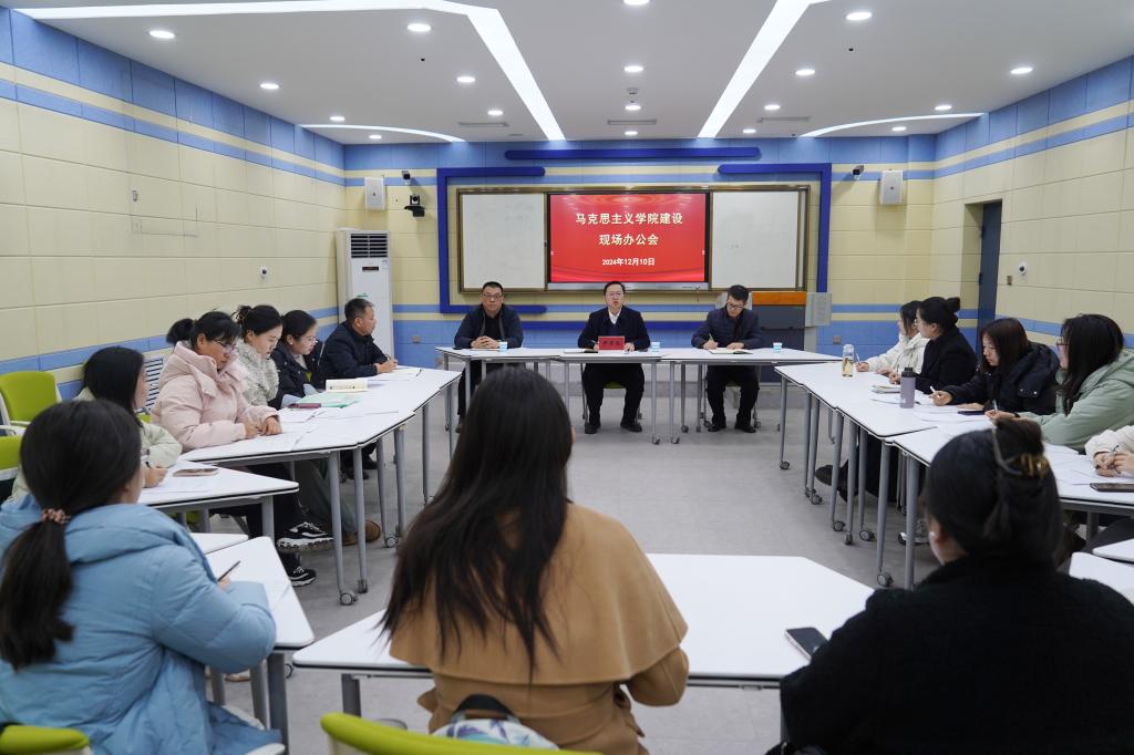 12月10日,校党委书记尹彦礼到马克思主义学院调研并召开现场办公会。党政办公室主任郭伟、教务处处长焦贺彬、马克思主义学院院长张继冬以及思政课专兼职教师参加会议。