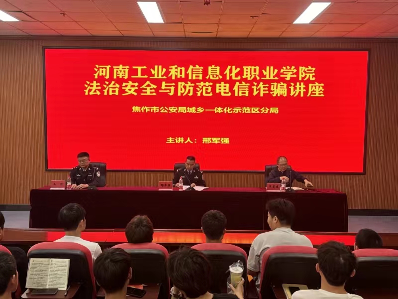 为进一步增强师生的法治意识,提高防范电信诈骗的能力,4月18日,我校邀请焦作市示范区城乡一体化分局文苑派出所副所长刑军强到校开展法治安全与防范电信诈骗专题讲座。
