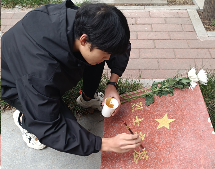 市关工委红色宣讲员、“十佳”拥军模范庞继承为青年们讲述了英雄烈士故事。号召大家将感恩化为行动,继承先烈遗志,发扬革命精神。团员代表乔贺春带领大家学习了《英雄烈士保护法》,呼吁同学们在生活中自觉做到“崇尚英雄、捍卫英雄、学习英雄、关爱英雄”。在烈士英名录前,团员青年右手握拳,重温入团誓词,用铿锵有力的誓言表达坚守初心使命,永远跟党走的坚定信念。大家一起擦拭丰碑,并对丰碑进行了描金,以此表达对先烈的崇敬和怀念。