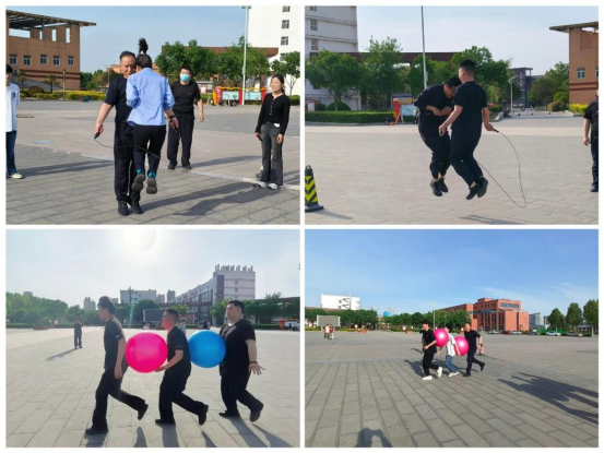 心理健康教育中心精心设计了旱地龙舟、同心鼓、团旗接力、车轮滚滚和快乐贪吃蛇五个项目,民警们和我校学生共同参与,在旱地龙舟游戏里配合节奏,喊着口号冲向终点;在同心鼓游戏中协同发力,让小球在鼓面跳跃;在车轮滚滚环节齐心制作“履带”,默契配合完成挑战。