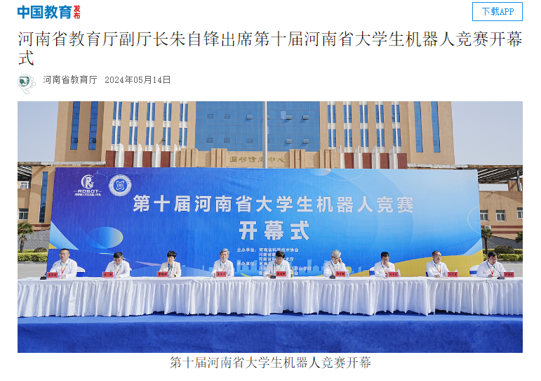 5月12日,第十届河南省大学生机器人竞赛在焦作举行。省教育厅党组成员、副厅长朱自锋出席开幕式并致辞。