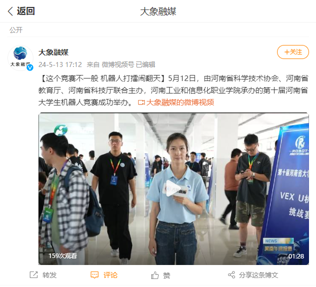 《大象融媒2024-5-13》报道我院举办第十届河南省大学生机器人竞赛