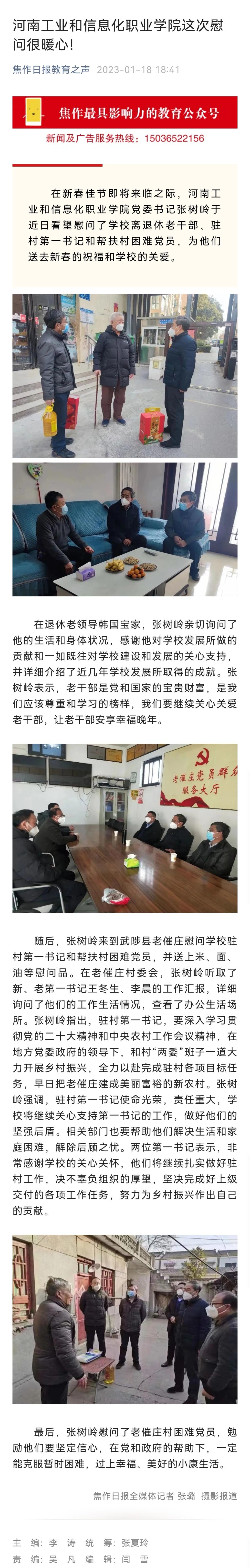 《焦作日报教育之声2023-1-18》报道我校党委书记看望慰问离退休老干部、驻村第一书记和帮扶村困难党员