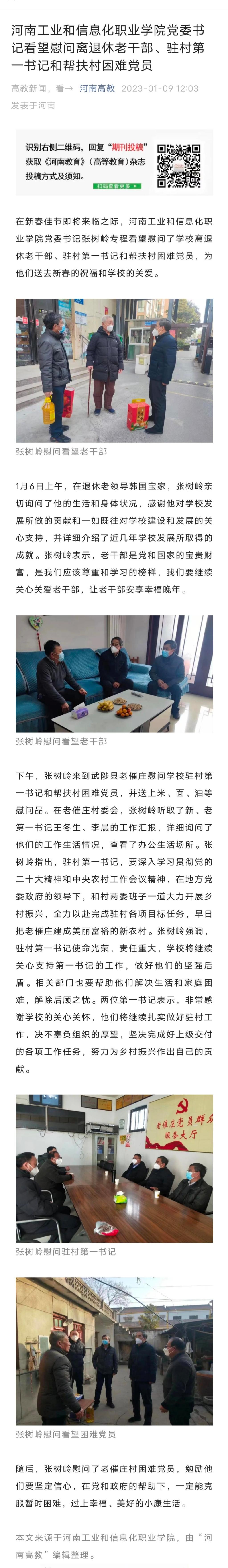 《河南高教2023-1-9》报道我校党委书记看望慰问离退休老干部、驻村第一书记和帮扶村困难党员
