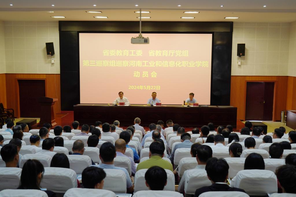 按照省委教育工委、省教育厅党组2024年度巡察工作统一部署,2024年5月22日上午,省委教育工委、省教育厅党组第三巡察组巡察河南工业和信息化职业学院工作动员会召开。会前,第三巡察组组长孙新卿主持召开与河南工业和信息化职业学院主要负责人的见面沟通会,传达省委教育工委、省教育厅党组巡察要求,副组长侯刚通报了巡察任务和工作安排。会上,孙新卿就做好巡察工作作了动员讲话,院党委书记尹彦礼主持会议并作表态发言。