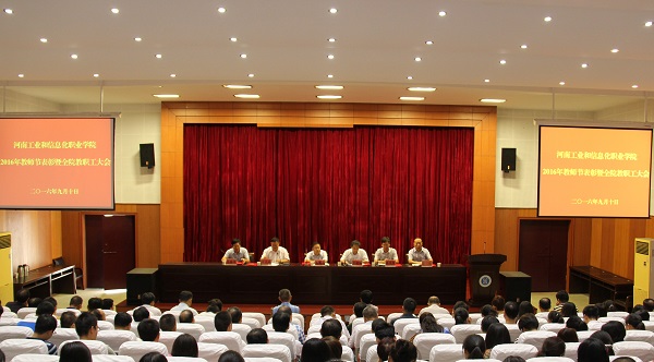 9月10日下午,我院在多功能报告厅隆重召开2016年教师节表彰暨全院教职工大会,对一年来在教学、科研、管理等方面做出突出贡献的先进集体和先进个人进行表彰,对新学期工作进行部署。院领导王海长、张树岭、毋虎城、陈荣邦、席振修、吕况出席会议,全院教职工参加了大会。大会由毋虎城主持。