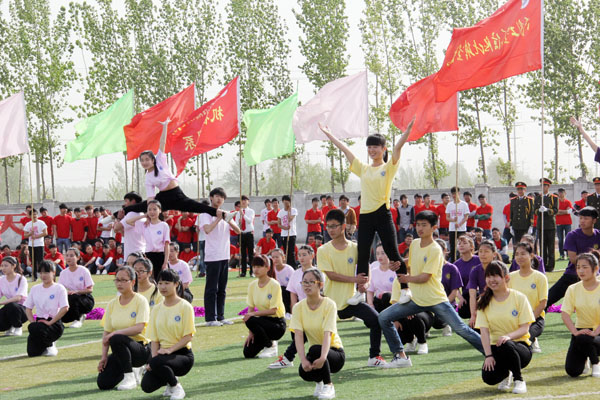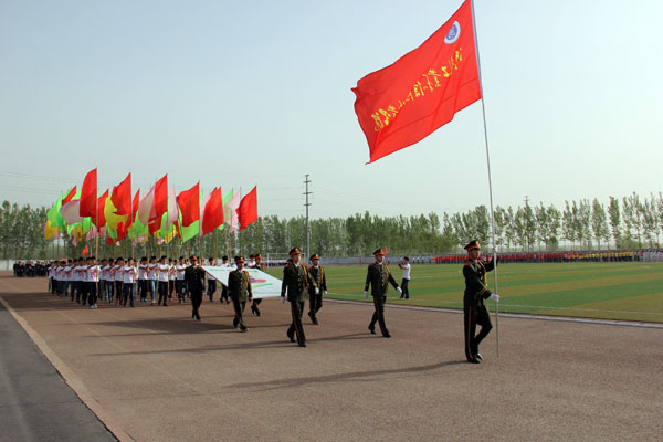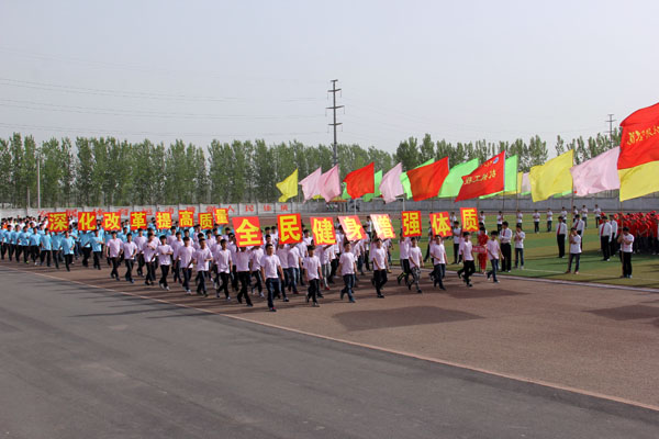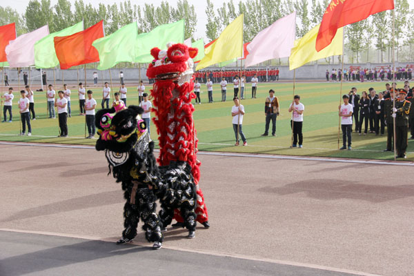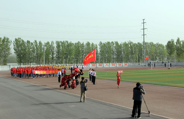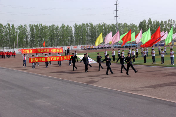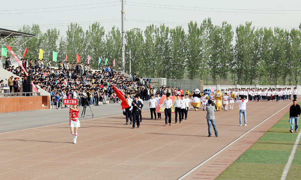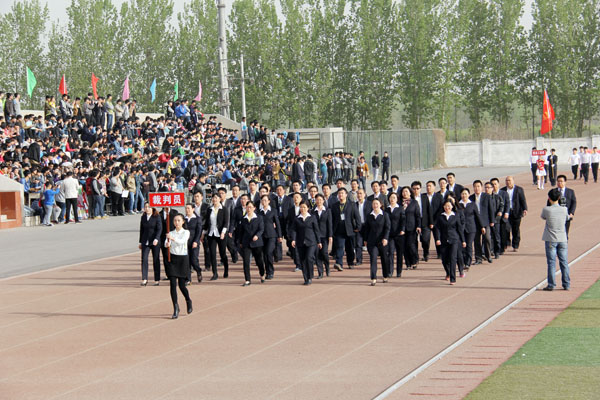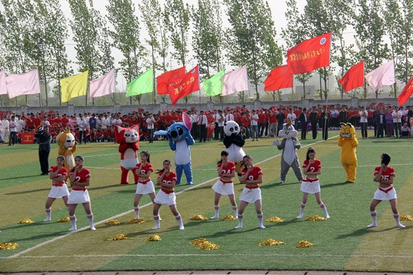上午8时,运动会开幕式正式开始。学院仪仗队在激昂的运动员进行曲中率先走过主席台。裁判员方队和各系代表方队依次迈着矫健的步伐、喊着嘹亮的口号,整齐走过主席台接受检阅。各方队分别以独特的方式展现了我院各个学科特色和精神风貌,其中信息工程系喜庆的卡通玩偶引导方队进场,把开幕式的热烈气氛推向高潮。方队进场完毕后,全院师生共同唱响中华人民共和国国歌。王海长致开幕词,他指出,2015年是学院建校40周年,是学院改革发展的重要一年,是落实河南省普通高等学校体育工作十项规定要求、全面推进阳光体育运动的关键一年,希望全体师生员工以本届运动会为契机,进一步提高健康意识,积极参加体育锻炼,增强体质,形成体育锻炼常态化的良好氛围;希望全体运动员安全参赛,文明参赛,赛出成绩,赛出风格;希望全体裁判员、工作人员,忠于职守,严守规则,公正裁判,保证竞赛顺利进行,努力把本届运动会办成团结文明、精彩纷呈的体育盛会。之后,运动员代表和裁判员代表分别进行了庄严宣誓。在文艺表演环节,各系表演方队竞相献出精彩的表演,充分展现了学院特色及当代大学生积极进取、青春激昂的精神风貌,精彩的表演赢得了观众们热烈的掌声和欢呼声!