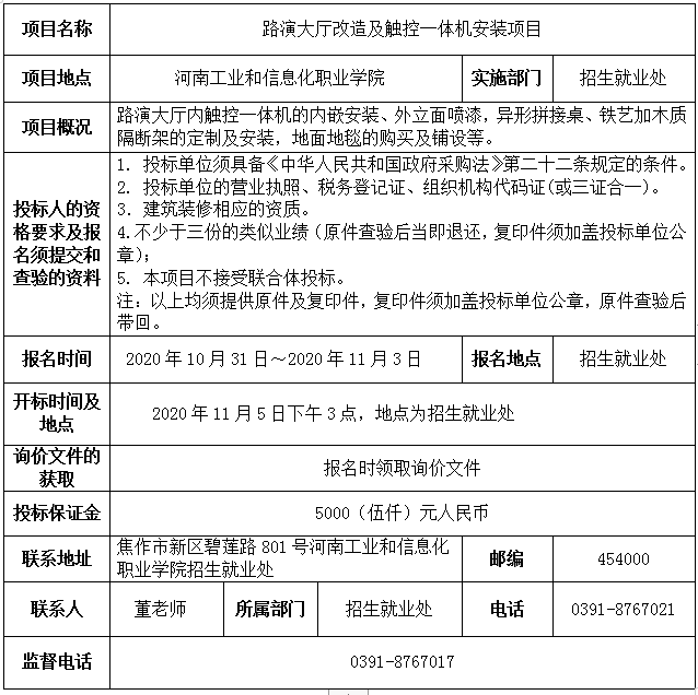 路演大厅改造及触控一体机安装询价公告