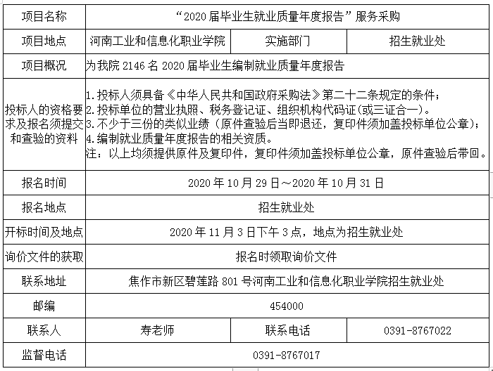 “2020届毕业生就业质量年度报告”服务采购询价公告