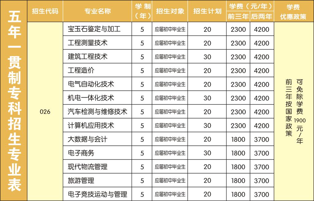 河南工业和信息化职业学院2021年五年一贯制招生专业计划一览表