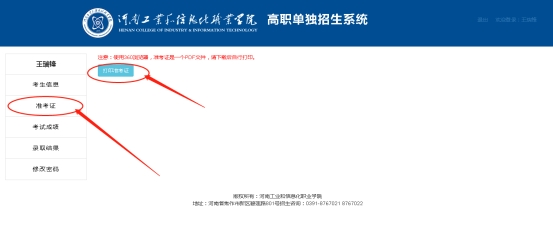 附:考生打印单招准考证的操作流程和方法