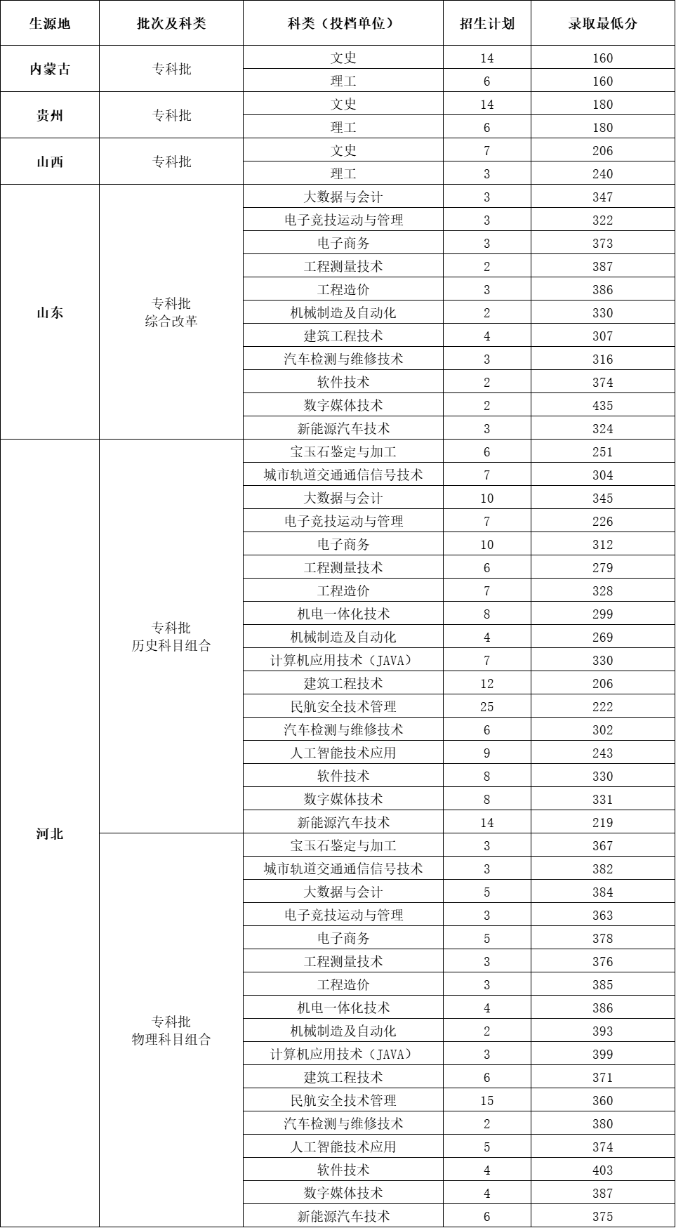 河南工业和信息化职业学院2022年普通高招省外专科批录取最低分