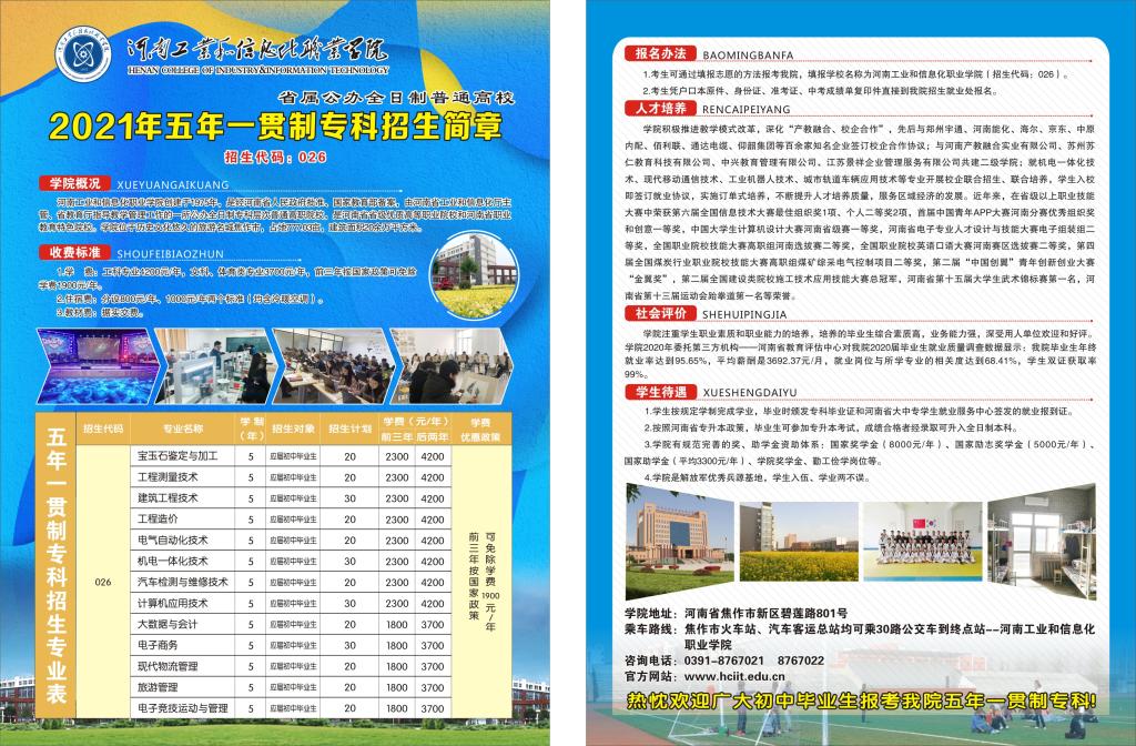 河南工业和信息化职业学院2021年五年一贯制招生简章