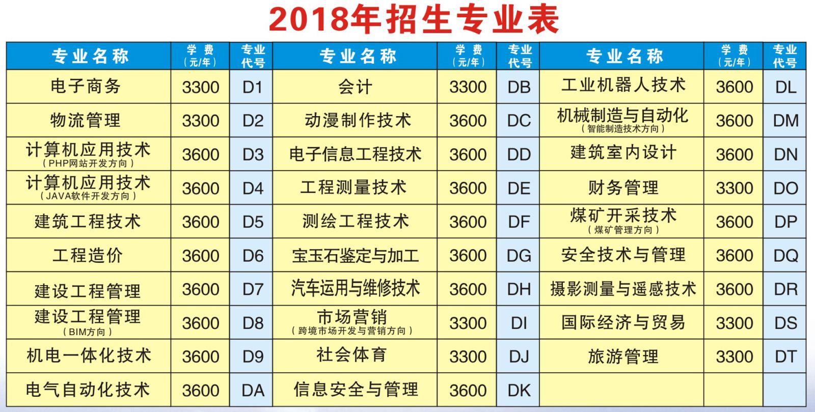 河南工业和信息化职业学院2018年单招专业代码对照表(最新)