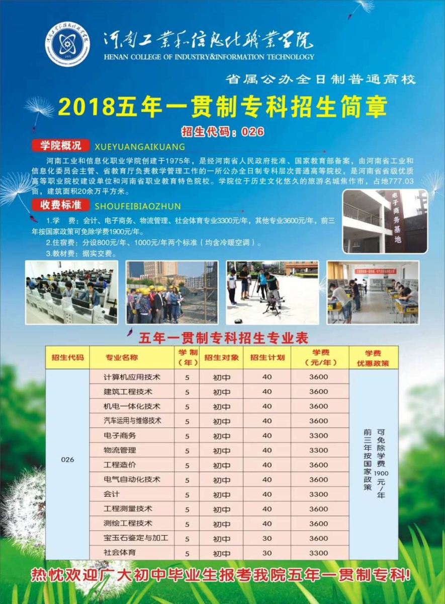 河南工业和信息化职业学院2018年五年一贯制专科招生简章图片版